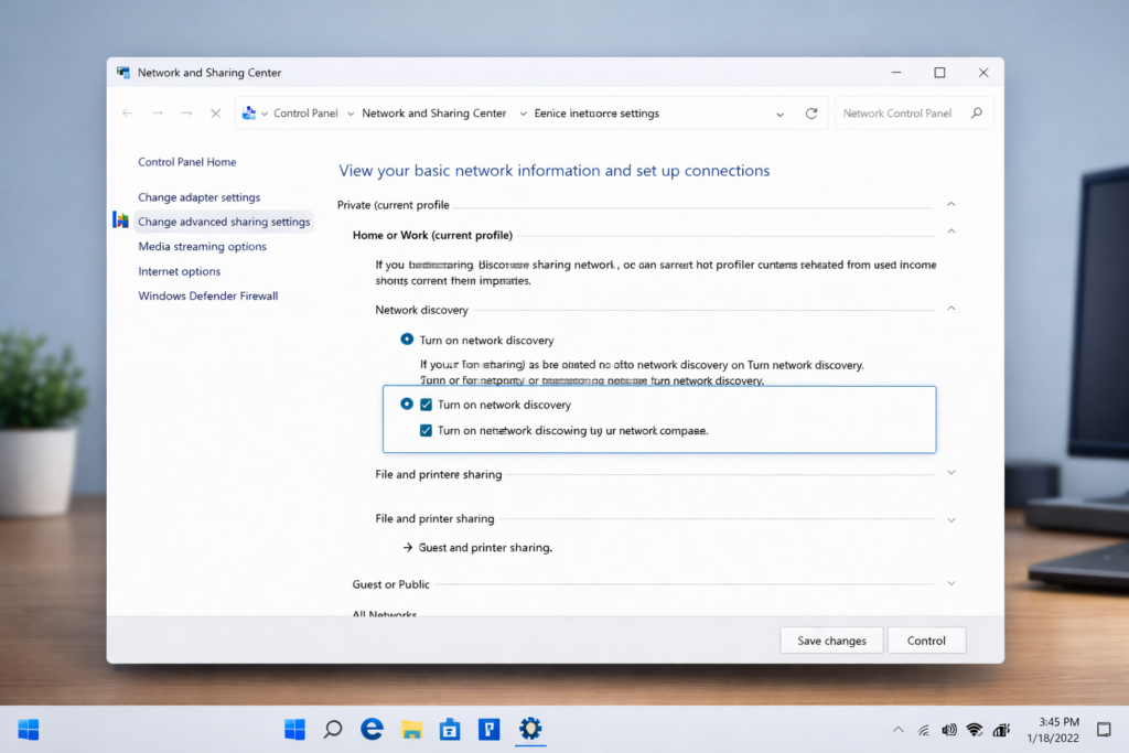 The most common reasons are: Network Discovery is turned off, both computers aren’t on the same network, the Windows Firewall is blocking sharing, or the Print Spooler service has stopped. Follow the troubleshooting steps in the section above to fix these issues one by one.